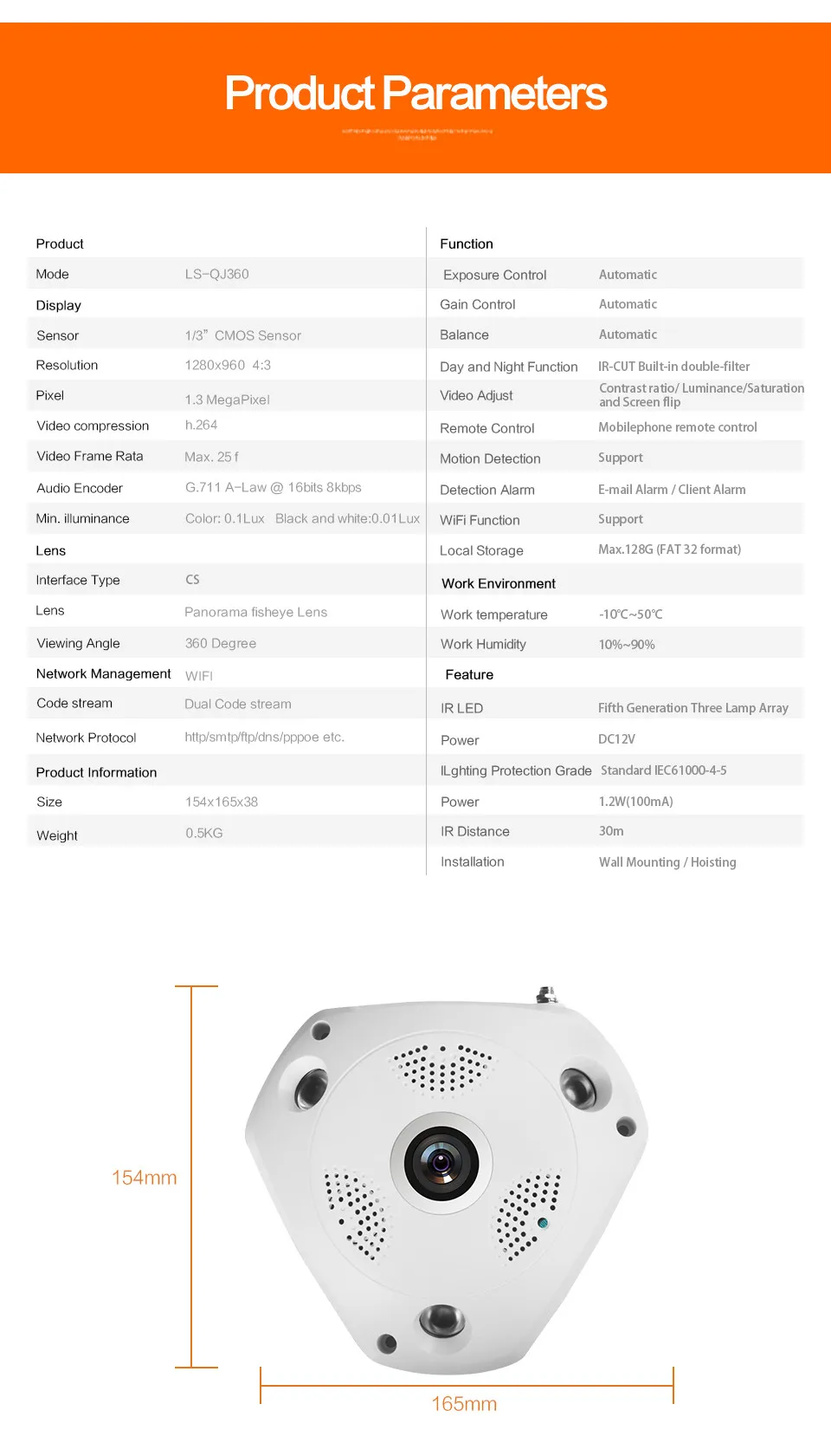 Vr Panorama Kamera 360 Derece Tavan Tipi Wifi Ip Kamera